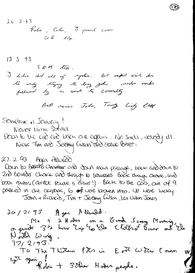 Axbridge Caving Group Logbooks 1960 - 2005