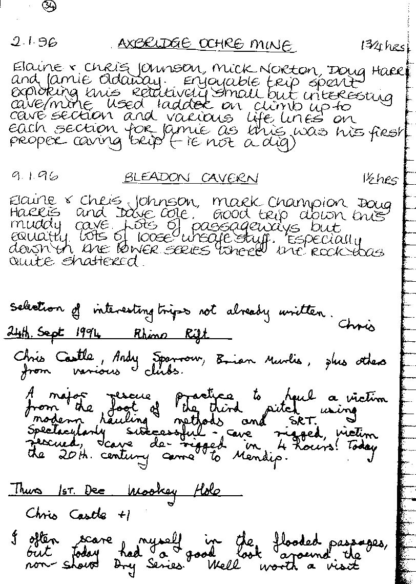 Axbridge Caving Group Logbooks 1960 - 2005