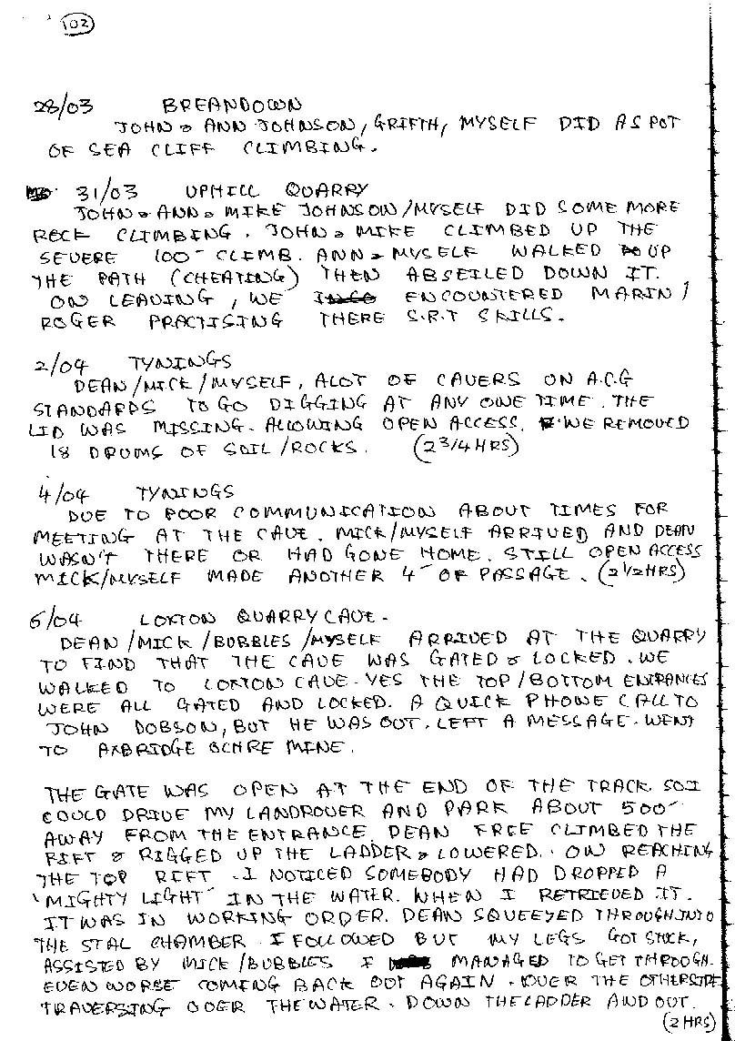 Axbridge Caving Group Logbooks 1960 - 2005