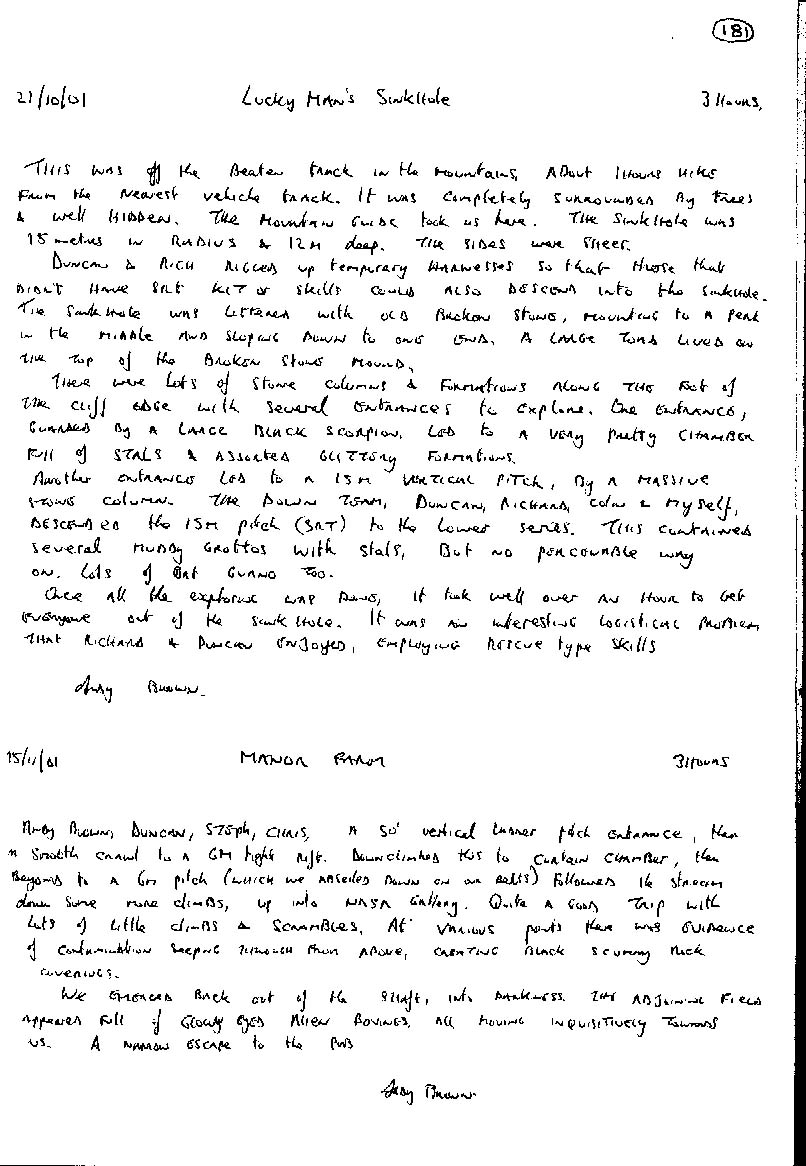 Axbridge Caving Group Logbooks 1960 - 2005