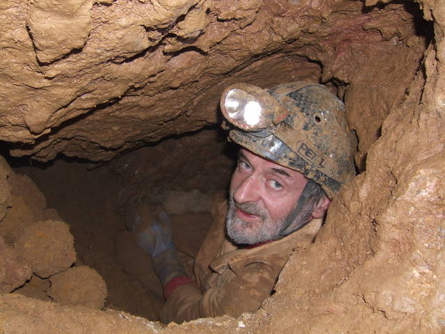 Title/Subject: Tony Jarratt in the dig at the bottom right of the entrance rift